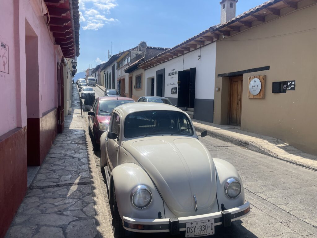 (One of many VW Beetles on the streets of San Cristobal, Mexico)