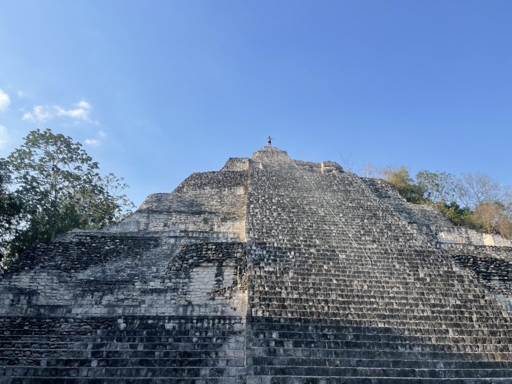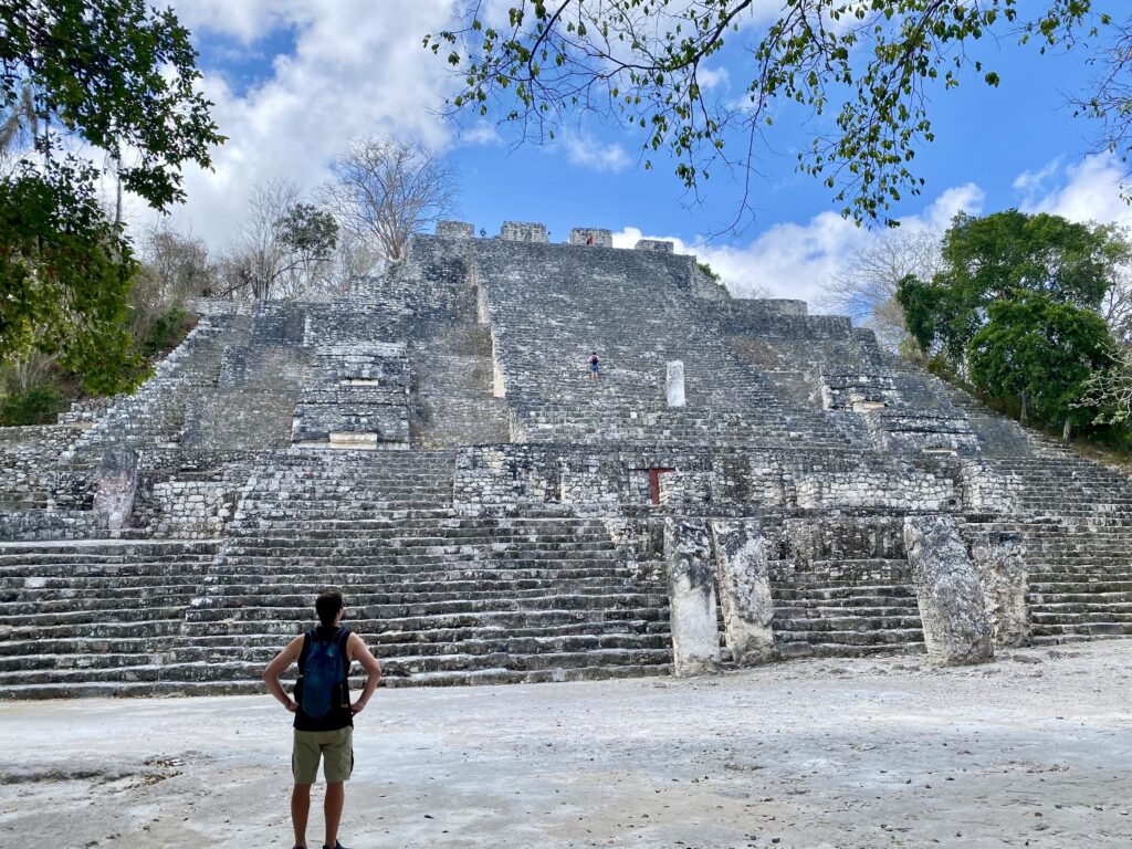 It’s hard to access, driving two hours down dusty dirt roads from the main highway, but times are changing. The road has just been graded and asphalt is starting to be laid. A new train station is being built which will turn the most inaccessible Mayan site in Mexico into a simple day trip. It’s part of a major Mexican development to connect the entire Yucatan on a line called the Tren Maya (Mayan Train). For now though, it’s remote and wonderful. We climb to the top of Structure 1 and 2, two of the highest pyramids in the Mayan world at 50 and 45 meters high. From the top you can see nothing but dense jungle and other pyramids poking above the greenery. It’s everything I’d hoped for, like something out of an Indiana Jones film. Remote, peaceful, abandoned and hidden. It’s a great end to our time in the country.